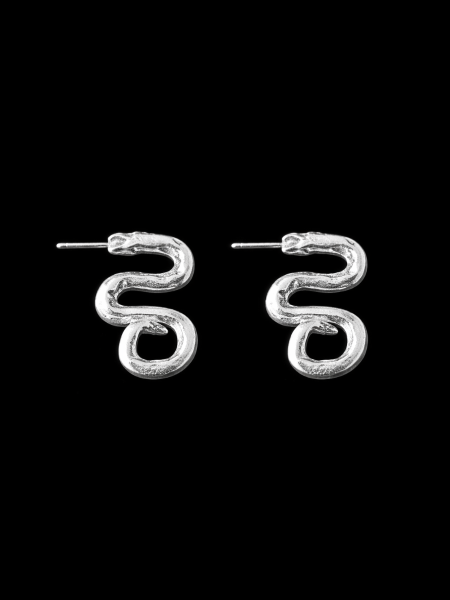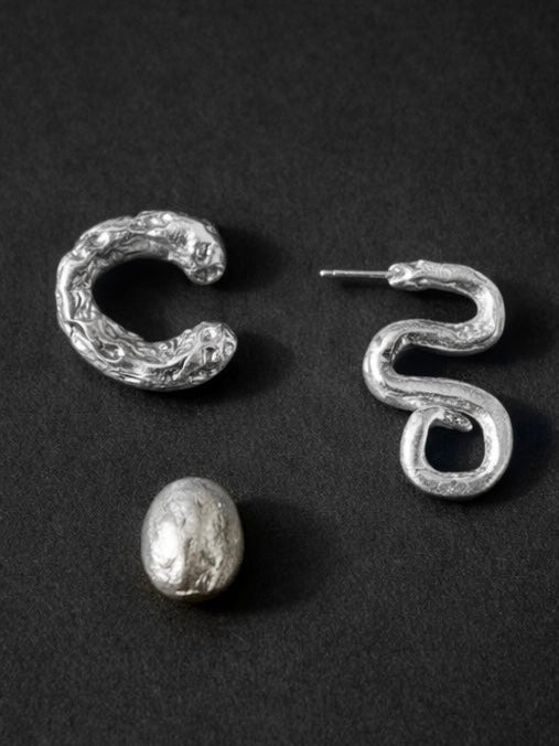 Hand-sculpted in sterling silver metal clay, each earring is individually formed. The serpent has long symbolized renewal and transformation. Fluid, sculptural, and close to the ear, these earrings feel both ancient and modern. A subtle talisman for becoming.