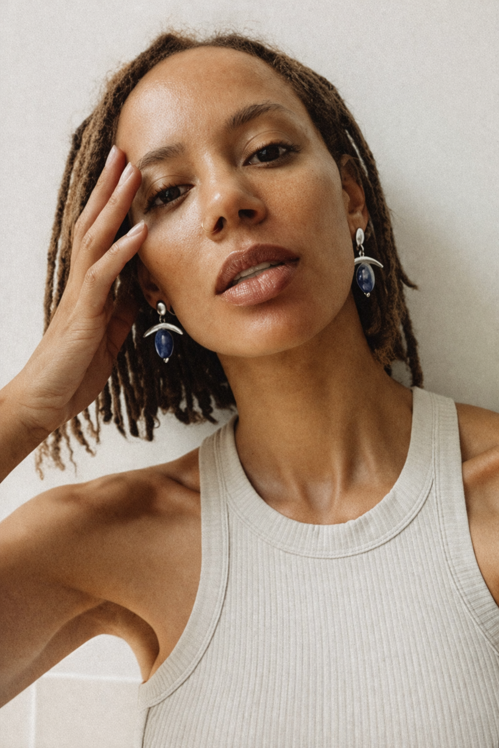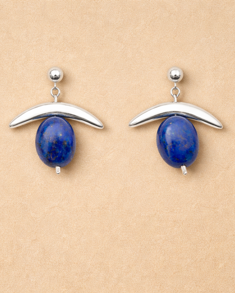 Divine feminine meets lapis blue moon. Each hand sculpted earring shifts symbolizes the wisdom and fertility to birth creation of the divine feminine.