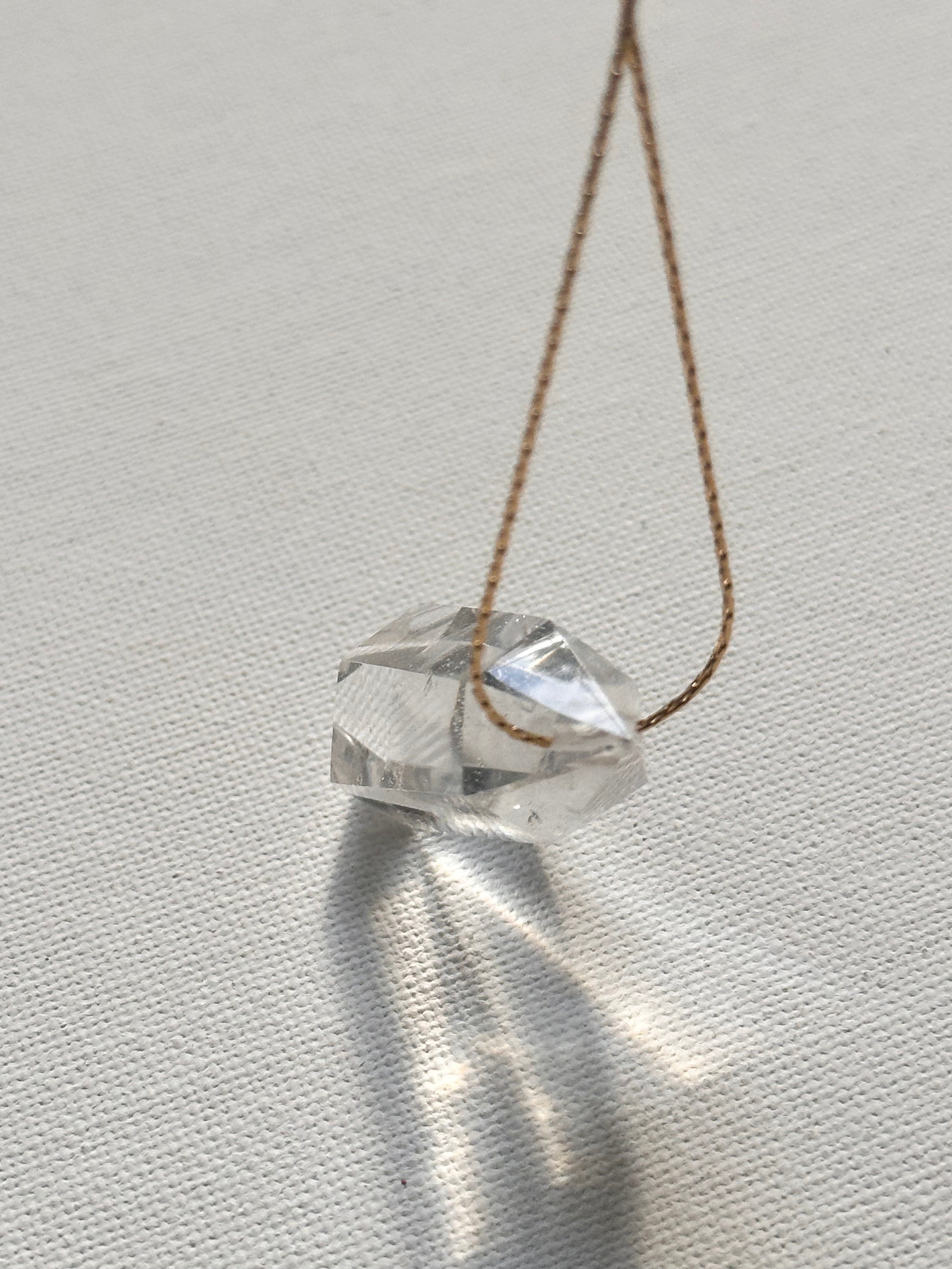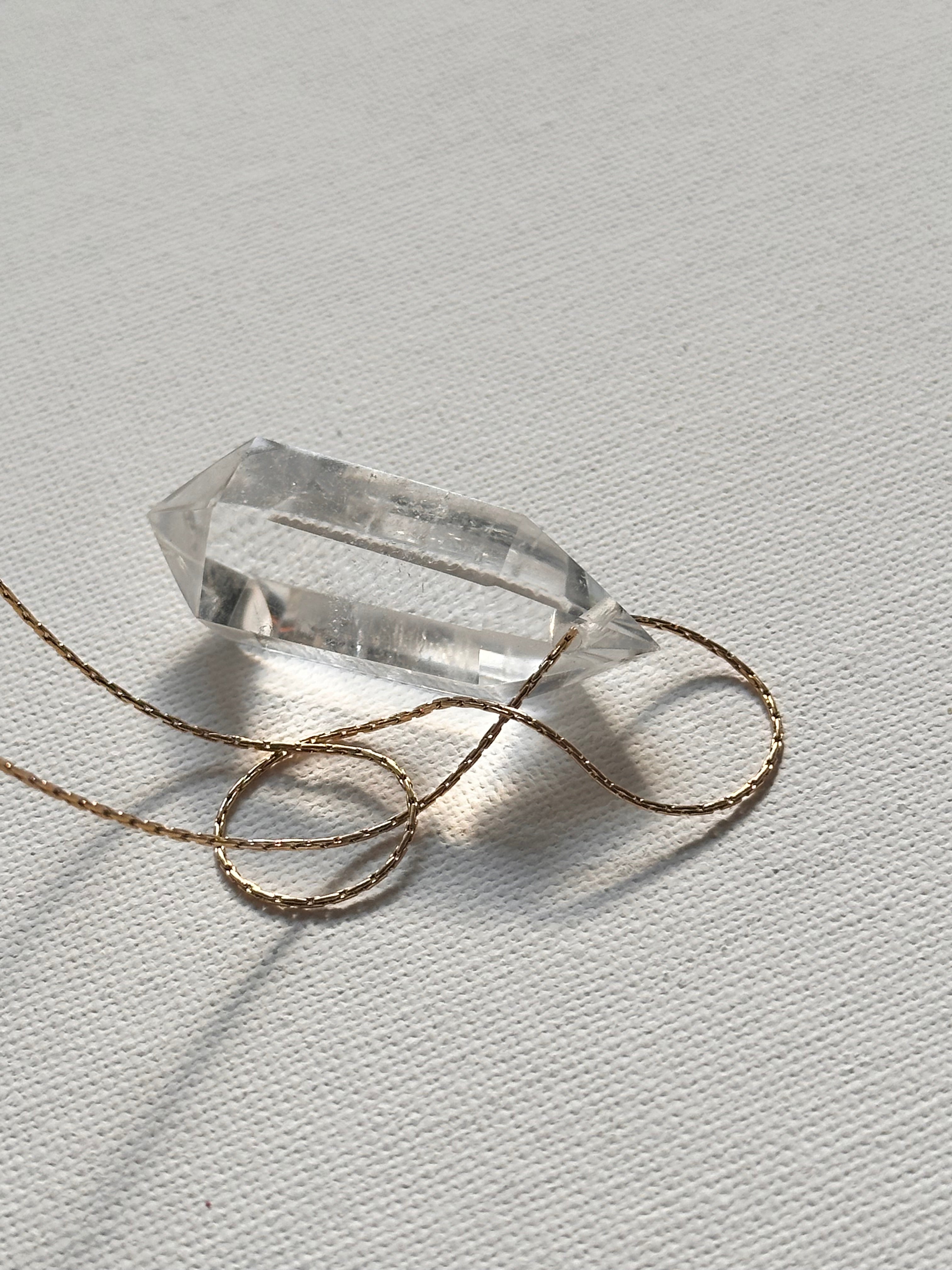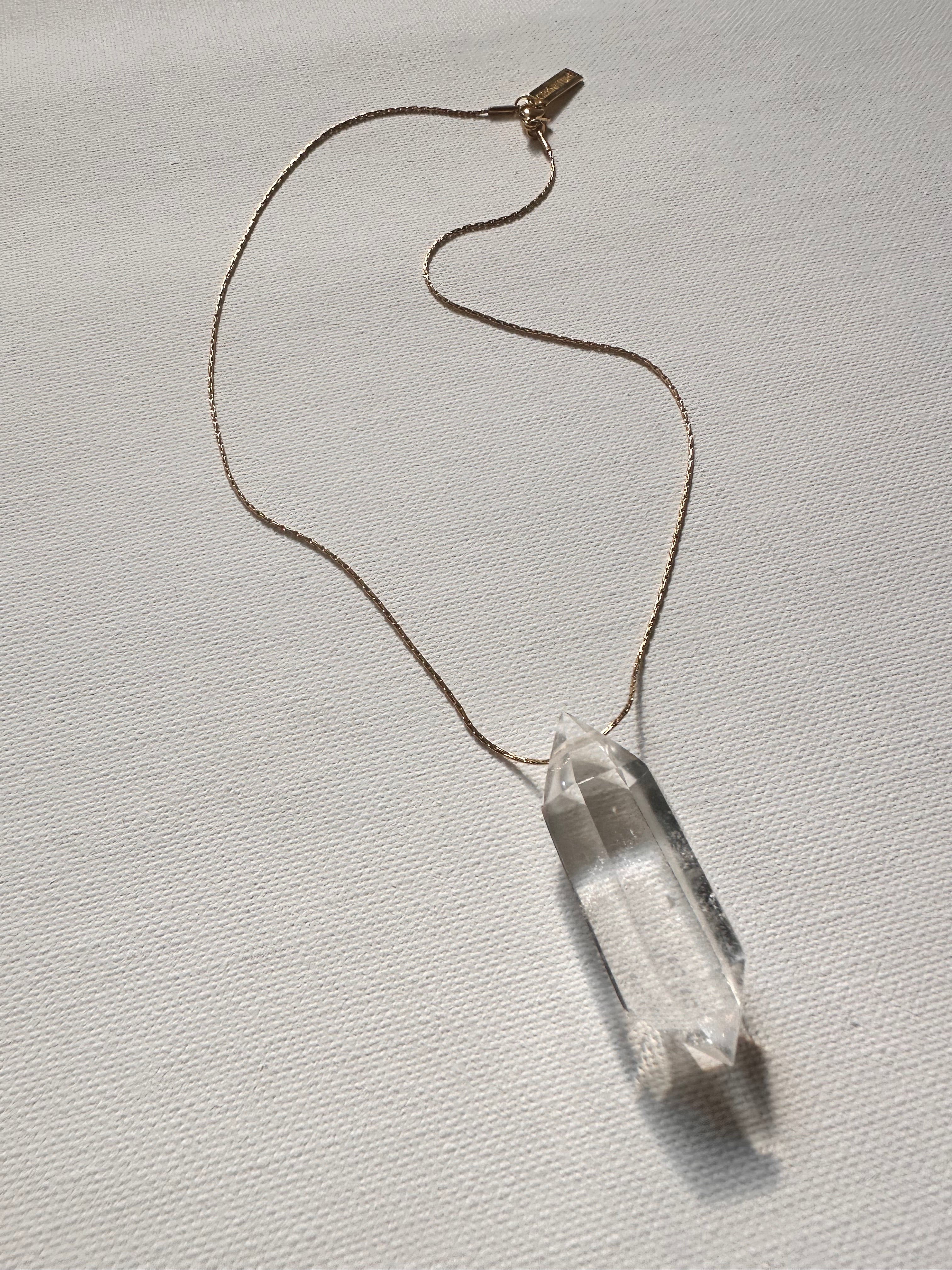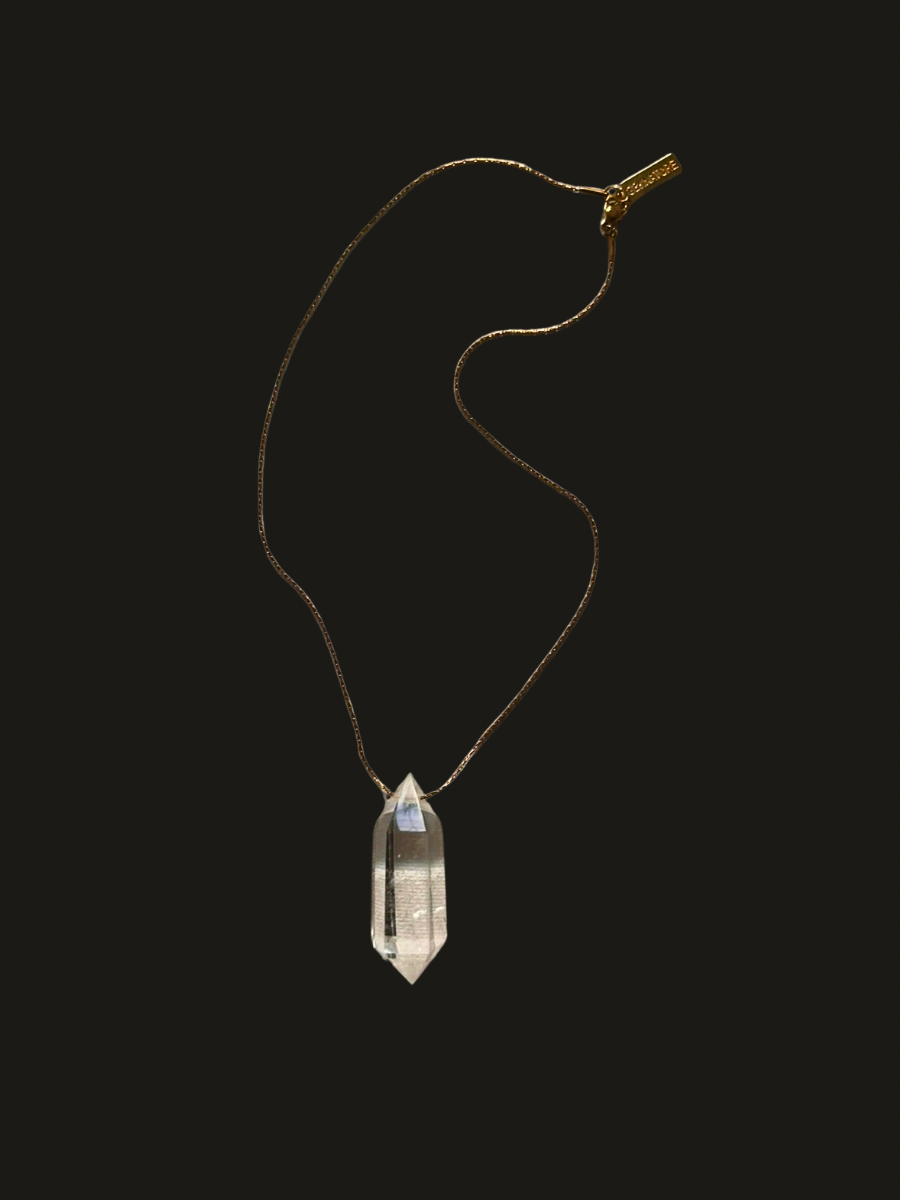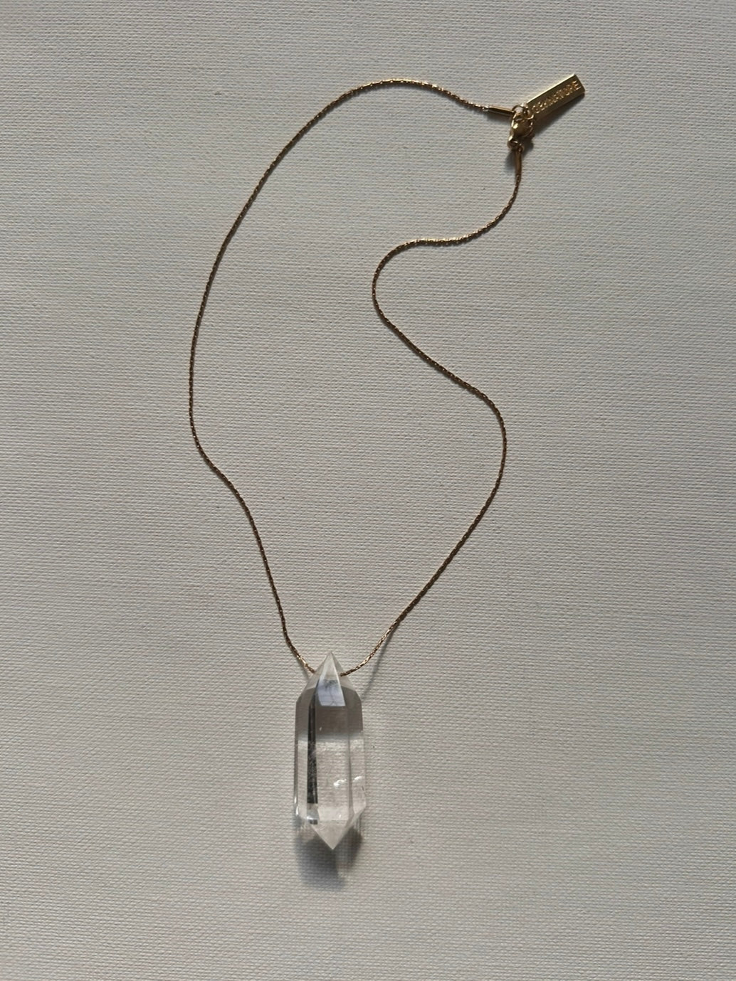 The raw quartz necklace is a powerful stone that clears energy. One of my favorite necklaces to layer. The dainty chain allows for the stone to take up space and set the mood for the day.