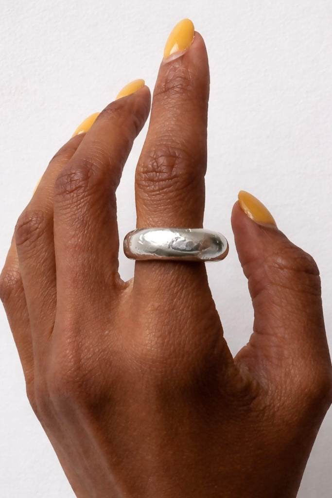 A solid heavy hand sculpted sterling silver band, a talisman for fast truth, fearless voice, and new timelines. Uranus is the planet of sudden changes, Inventive writing/speaking/teaching style.